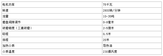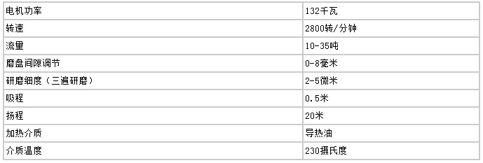 高速剪切均化磨技術參數(30T/小時)